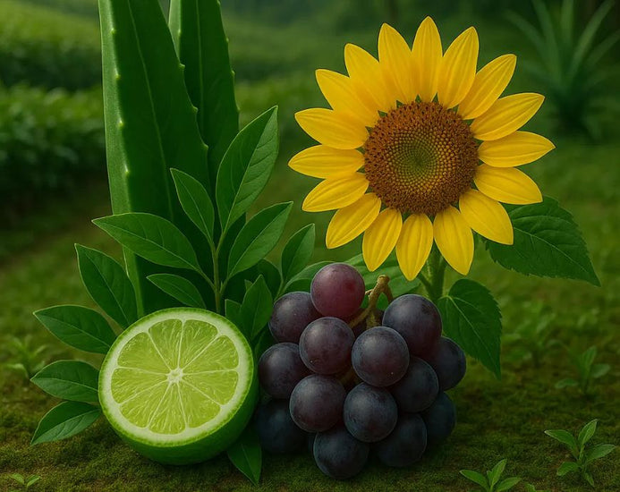 • Sunflower & Grape Seed Oils – Moisturize and protect without clogging pores